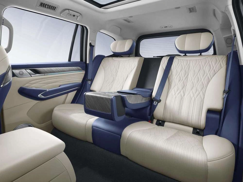 • Центральный подлокотник сидений заднего ряда с подстаканниками, отсеком для хранения и сенсорным экраном управления функциями автомобиля
